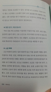 소금족욕 : 발이 피곤하거나 각질이 있거나 무좀이 생겼거나 발냄새가 심할 때 소금족탕을 하면 좋은데요, 소금을 풀고 식초를 약간 타서 담그면 염증과 각질이 줄고 피부도 부드러워