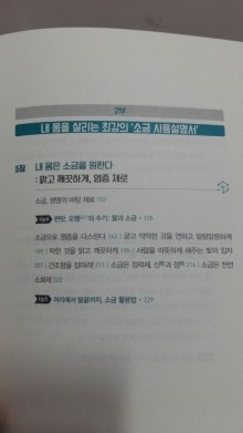 2부 '내몸을 살리는 최강의 소금 사용설명서'도 역시 총 4장으로 구성되어 있고, 우리몸과 소금의 관계, 소금의 역할에 대한 이야기를 다룹니다. 소금이 부족할 때의 증상과 생리학적 원리를 실제 사례와 함께 다루고, 소금이 부족하거나 지나칠 때의 몸과 마음은 어떤 변화가 생긴는지를 살펴봅니다. 아울러 음양오행 원리를 바탕으로 수기에 해당하는 짠맛과 신장,방광 기운을 중심으로 풀어내고 있습니다.