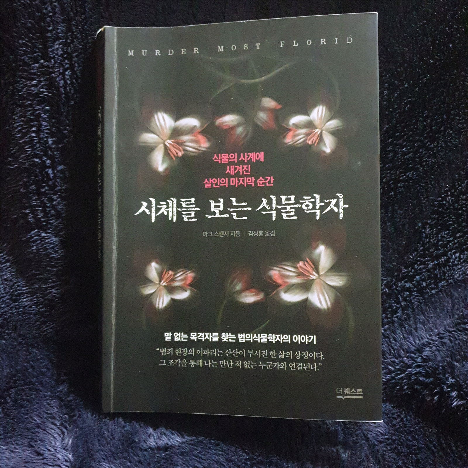 그것이 알고싶다라는 프로그램을 좋아한다. 섬뜩하고 무섭기도 한 사건들을 전문가들은 사소한 증거, 과학적이느접근, 범죄자의 심리를 한조각씩 맞추어 하나의 그림을 만들어낸다. 하지만 야외에서 일어난 사건이라면 현장은 빠르게 오염되어간다. 더욱이 사망후 오랜시간이 지나서야 발견되는 시체들은 동물들에, 곤충에, 식물들에게 빠르게 자신의 몸을 맡기고 부패해간다. 저자는 어찌보면 현장을 망치는것만 같아 보이는 식물을 연구하는 식물학자이다.따분하게 연구실 한켠을 차지하고 있던 마크 스펜서는 어느날 갑자기 사건 현장의 시체 사진을 받아들고, 법의식물학자로서, 그의 인생이 변하기 시작한다.