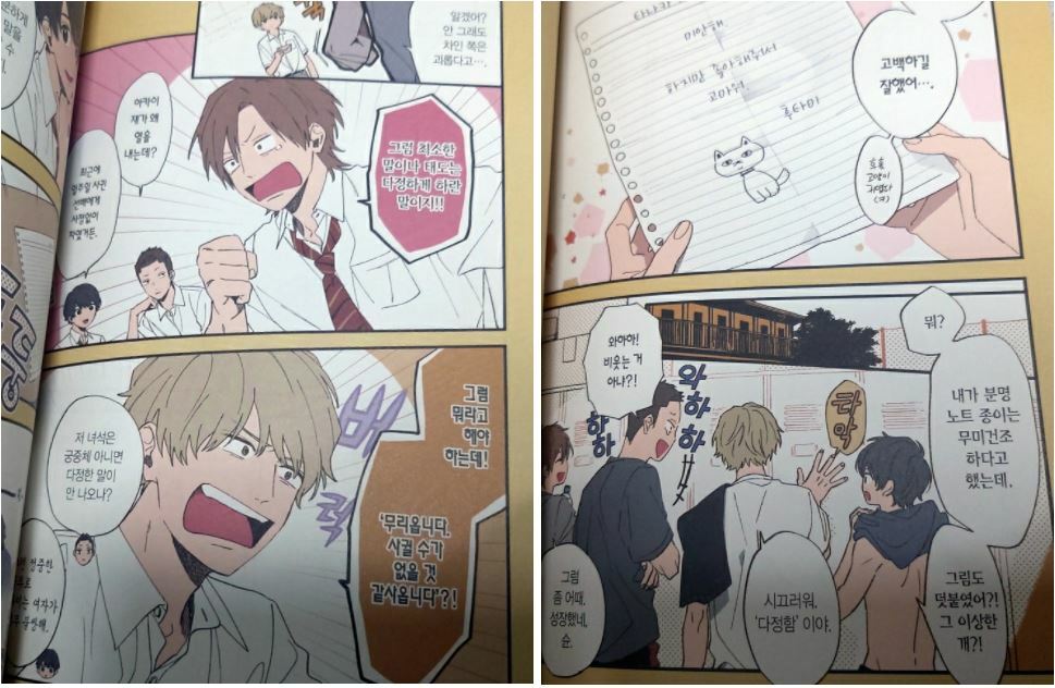 과도한 개그 포인트없이 잔잔한 일상과 풀컬러, 그리고 캐릭터들의 잘생김이 잘 어우러져서 꽤나 매력적인 작품입니다. 옛날에 "남자 고교생의 일상"이란 애니가 방영한 적이 있는데, 그 애니메이션에서 약을 많이 뺀 것과 거의 비슷한 느낌이라고 생각됩니다. 다만 이러한 재미 외에는 크게 두각을 드러내는 스토리도, 다른 재미포인트도 적기 때문에 꽤 루즈한 느낌이 드는건 아쉽다고 느껴지네요. 그래도 이전권에는 재미가 꽤 있었는데, 이번에는 그마저도 좀 덜한 느낌도 들어 아쉬움이 더 크게 느껴지기도 했습니다.