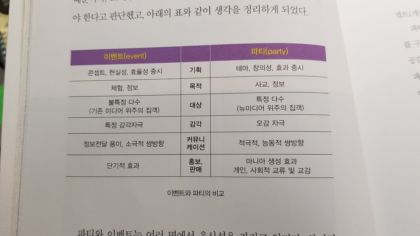 이벤트가 체험을 통해 정보를 제공한다면 파티는 사교를 통해 정보를 제공한다.