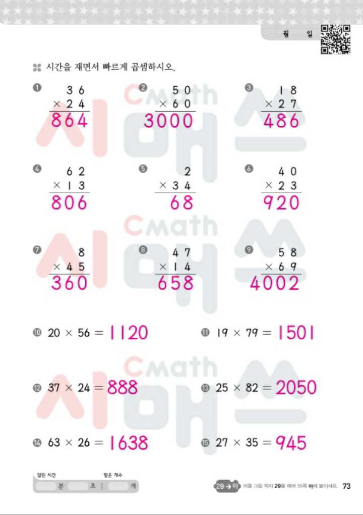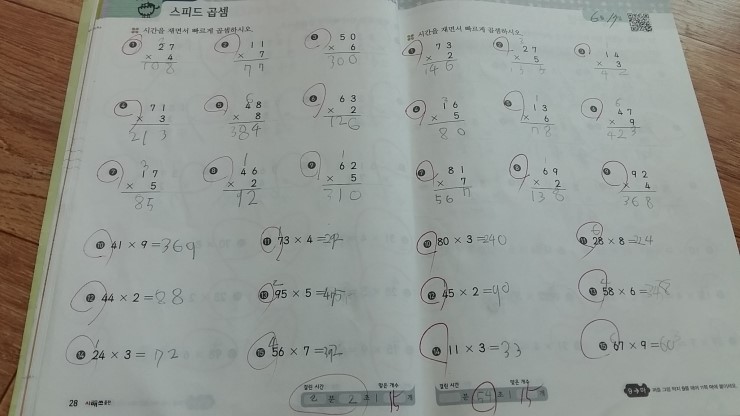 교재에 실린 빨강연산 초시계 qr코드는 넘 잘 사용하고 있다