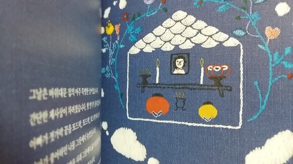 자수로 그린 아이의 집에서, 그 엄마의 영정사진이 있는 제사상을 보고,,