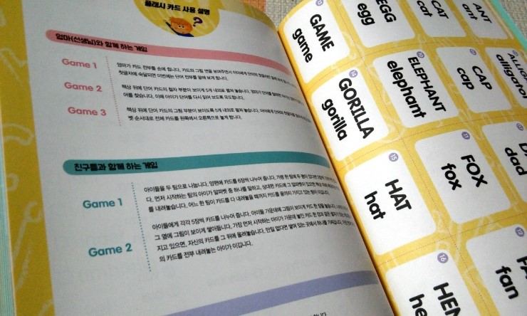 뒤에 단어 카드로 다양한 게임을 진행할 수 있게 구성되어 있답니다.
