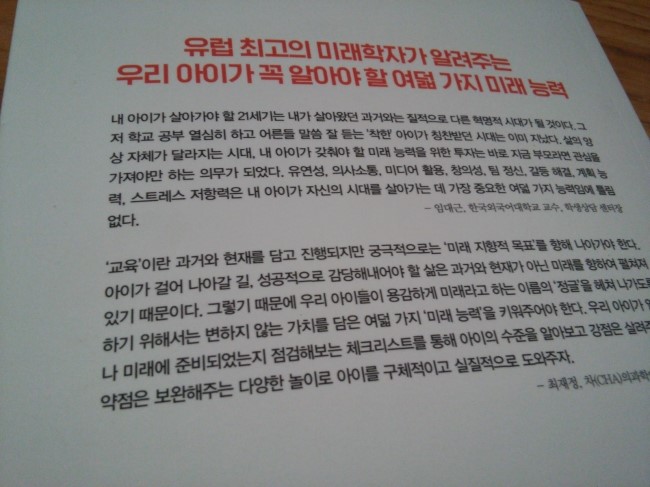 부모라면 미래능력에 투자해야 하는게 의무라는 추천사 글귀가 눈에 들어온다.