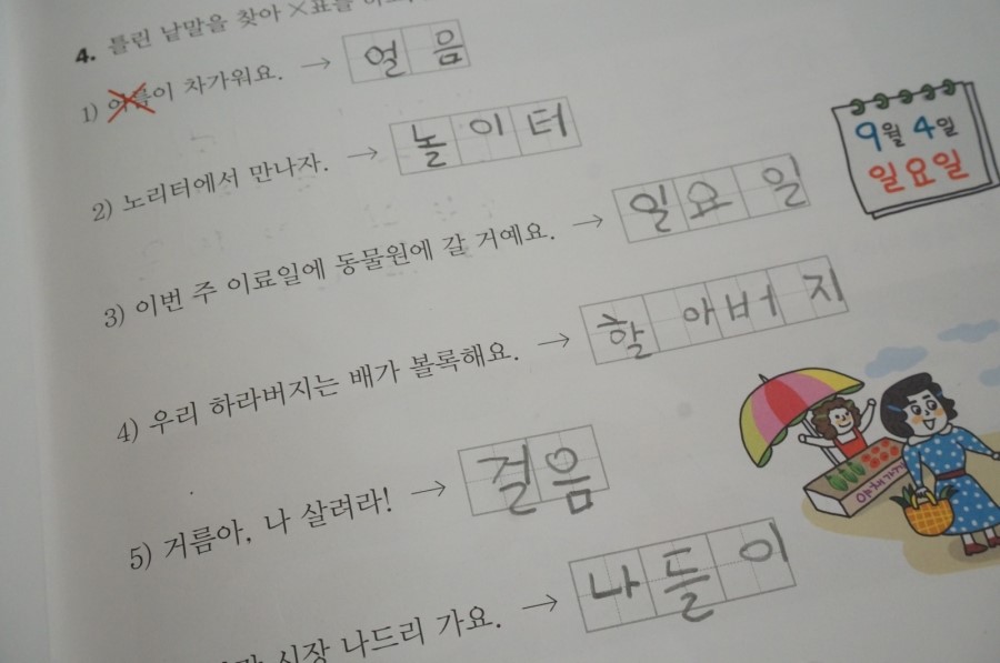 이 교재로 진행하다보면 맞춤법은 걱정없을것 같다.