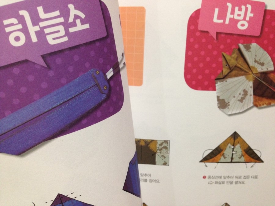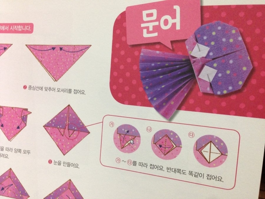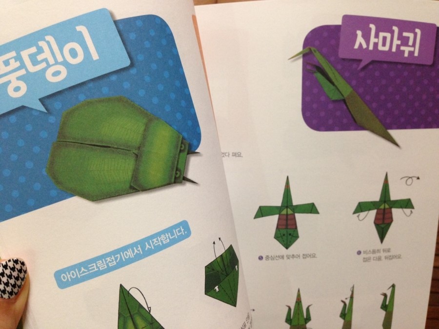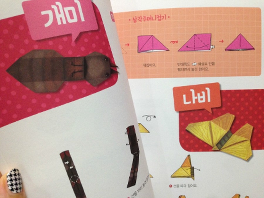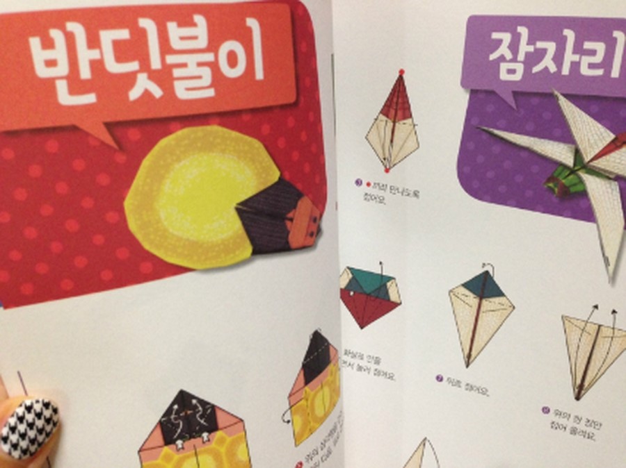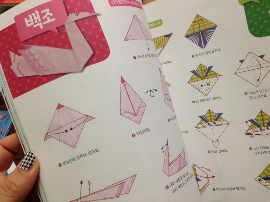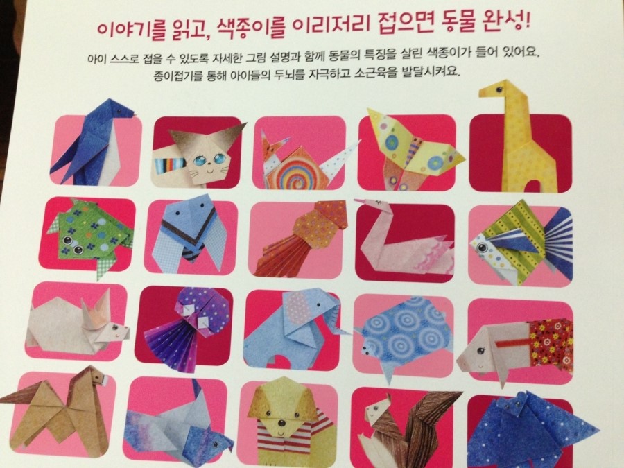 단면의 색종이에서 느낄수 없는 입체감이 종이접기 책속에 있답니다.