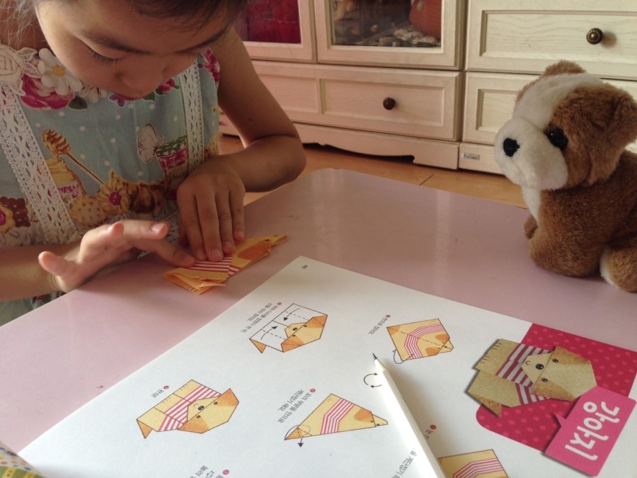 딸래미는 걍쥐 접고 싶다고 강쥐 옆에 두고 열심히 접고 있지요
