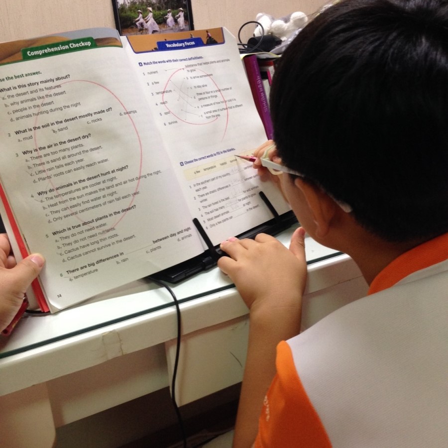 아빠는 바로 채점하고 결이는 문제 풀고.