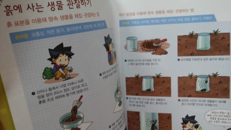 흙에 하는 생물 관찰하기 순서가 이렇게 자세히 나와 있고.
