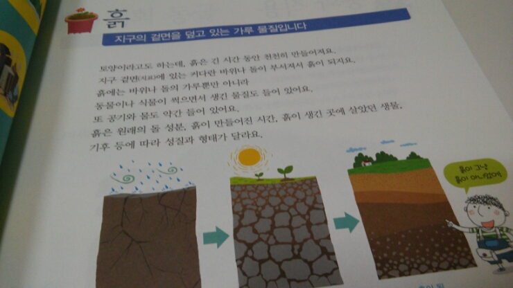 흙은 원래의 돌 성분, 흙이 만들어진 시간. 흙이 생긴 곳에 살았던 생물. 기후 등에 따라 성질과 형태가 달라진다는걸 알수 있게 되네요