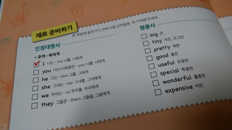 교재에 주어진 단어로 문장을 만들어 봅니다.