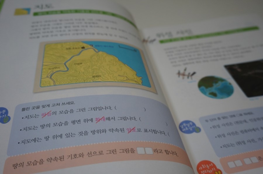 위치 지도 위성사진 등 3학년 처음으로 배운 사회교과에 나오는 내용들을 만나게 되네요.