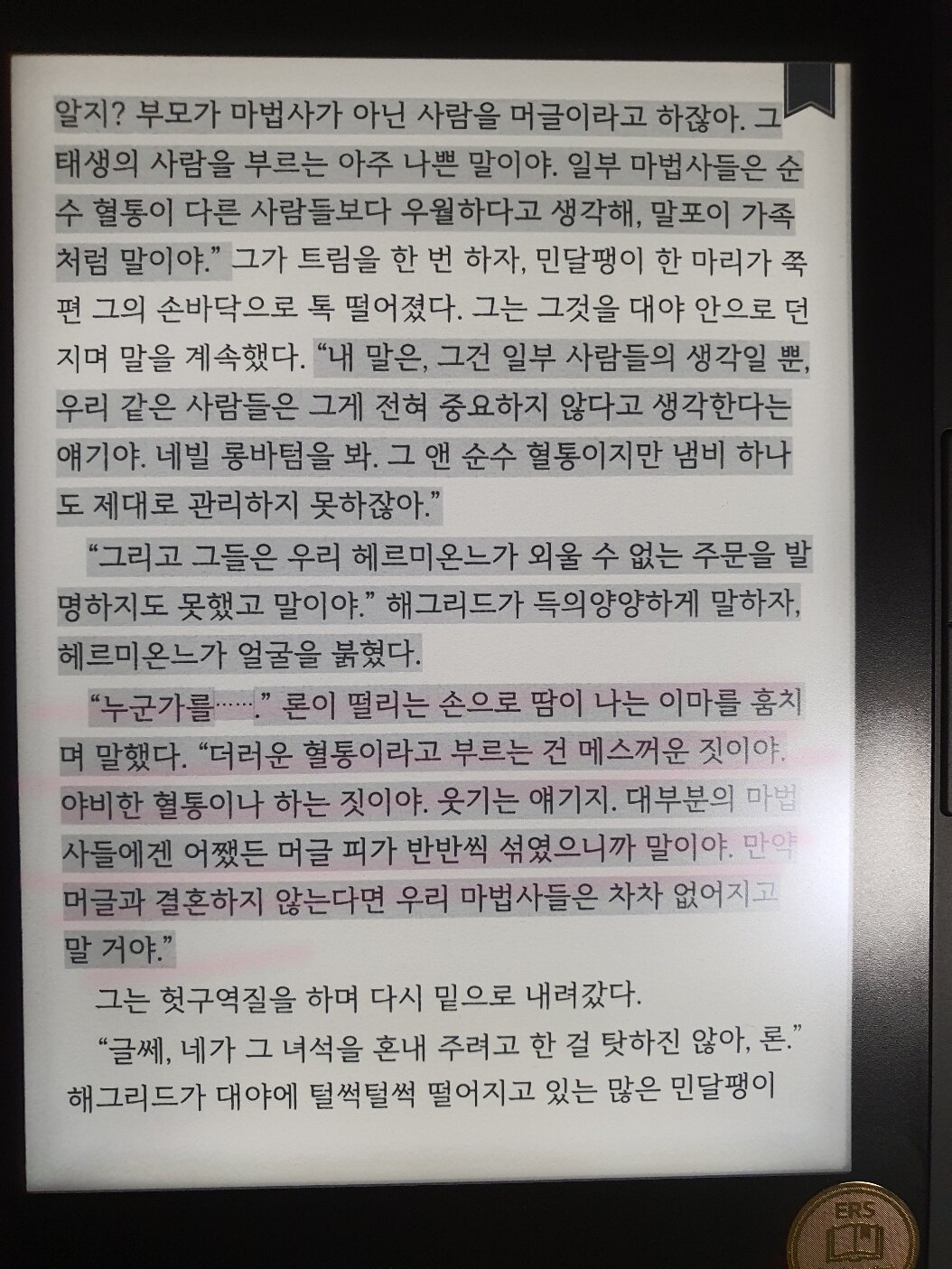 나의 유년시절에 나온 작품이지만, 성인이되어 다시 읽어도 마법사회의 순수혈통과 혼혈, 머글출신에 대한 인식문제는 인종차별문제를 너무 적나라하게 비유하고있어서 참 깊이 와 닿는다. 그러나 지금의 조앤 롤링은 왜 가정폭력(조니 뎁 캐스팅 문제)이나 젠더감수성(신동사 수현), 아시아에 대한 가치관에는 조금더 민감하지 못한걸까..?