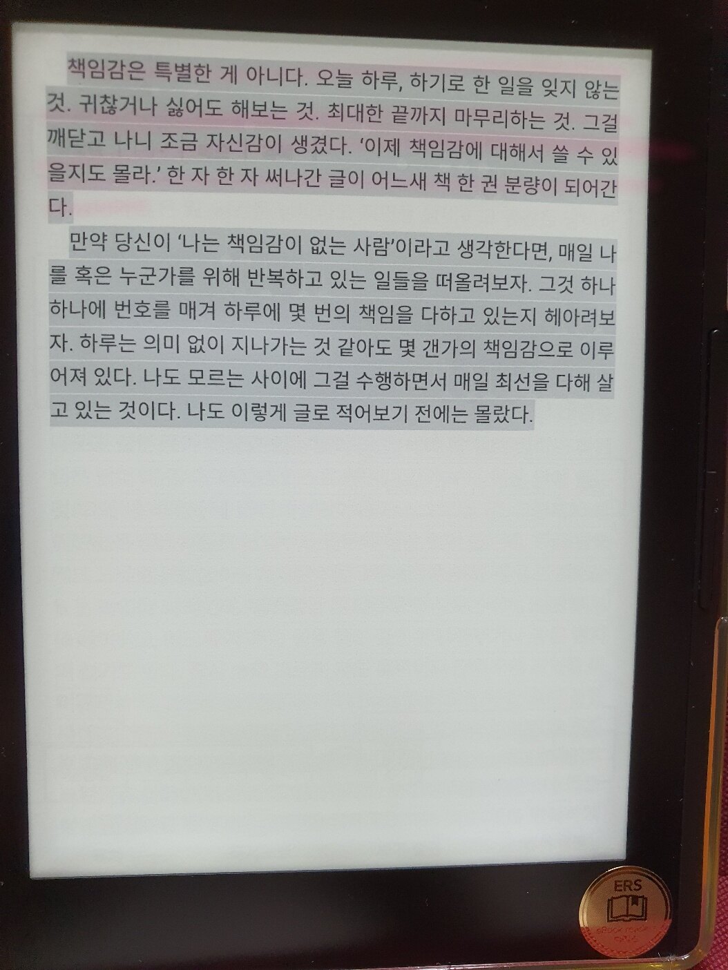 한 사람으로서, 내 일상에 대한 책임을 지는 것. 내 삶에서 그저 할수있는일을 하는것. 그것이 바로 책임감이 아닐까. <가벼운 책임>이라는 책의 제목이 역설적이면서도... 그 책임을 부담으로 삼는지 혹은 나 자신의 소소한 일상으로 삼는지는 온전히 스스로에게 있다.