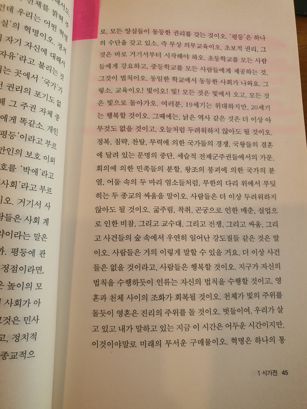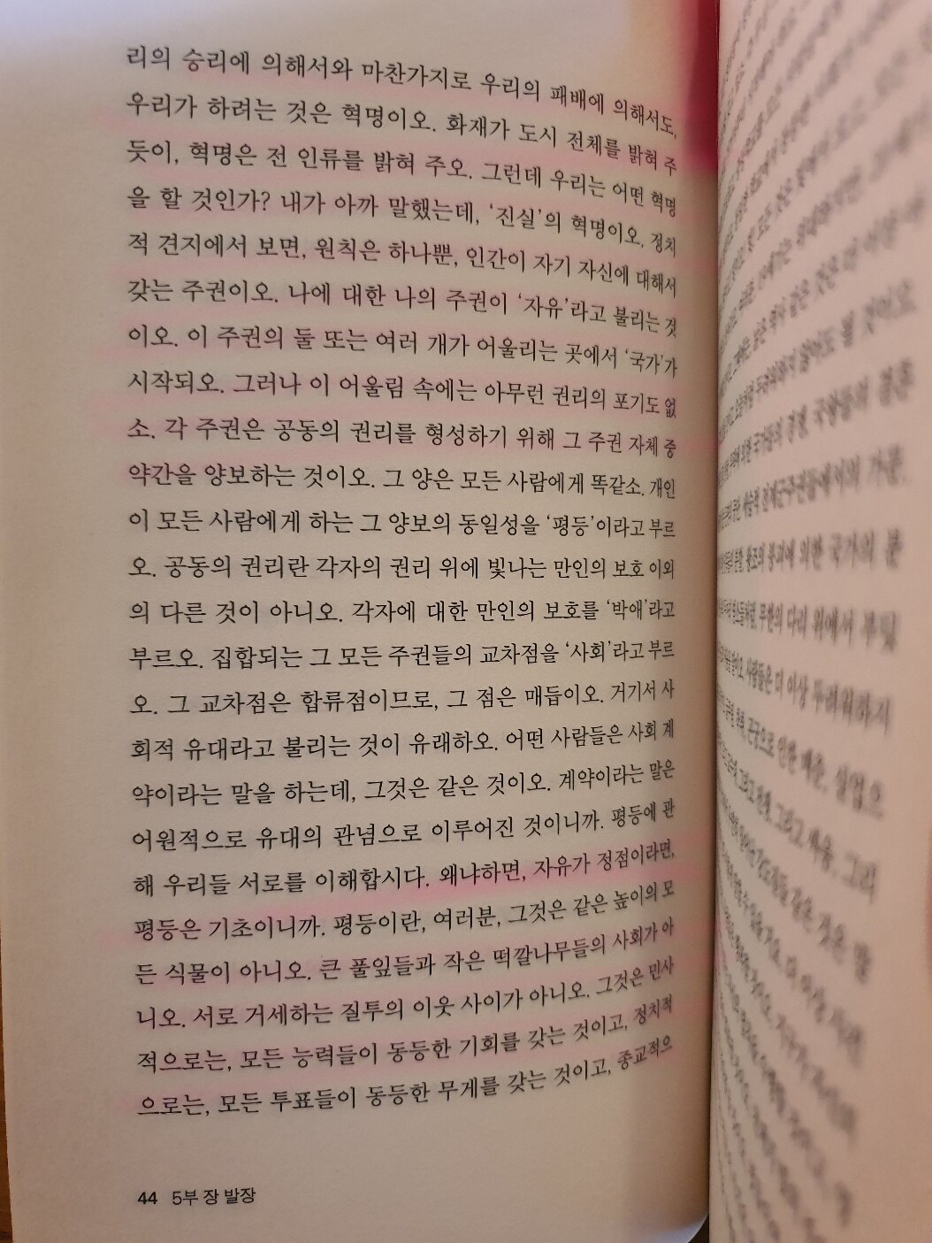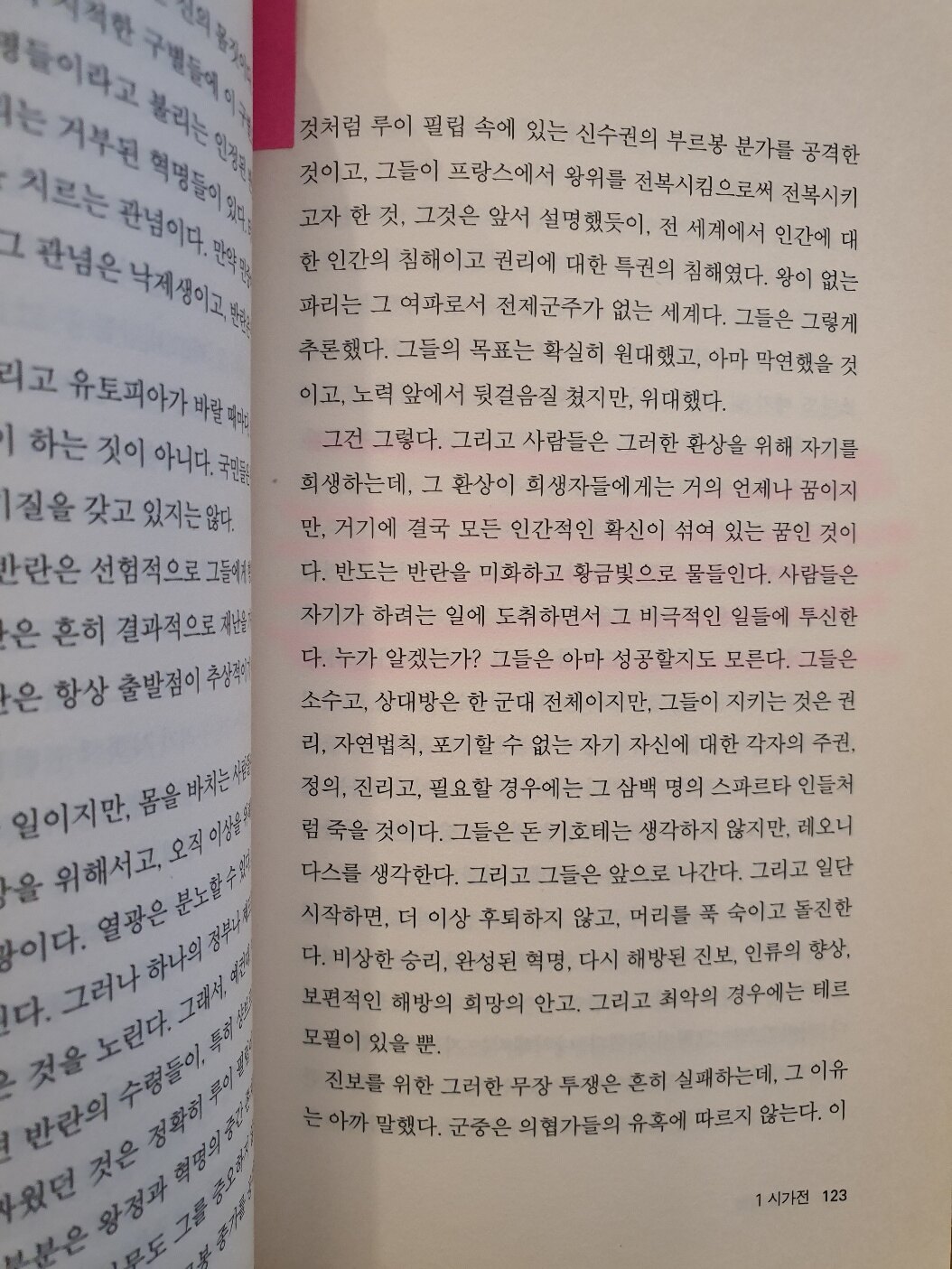 민음북클럽 <레미제라블> 마지막 미션을 위해 5부 일독을 시작했다. 1장을 읽는데 유독 혁명에 앞서 그 의의를 서술하는 목소리에 깊이 감응했다. 공화정이, 민주주의가...보통선거와 무상교육이 이루어지기까지 프랑스혁명부터 한국역사속에서 독재정치와 맞선 분들까지..얼마나 많은이들의 희생이 깃들어있는걸까. 그냥 얻은 것이 아닌 이 귀한 평등과 자유를 온전히 지키고 싶다.