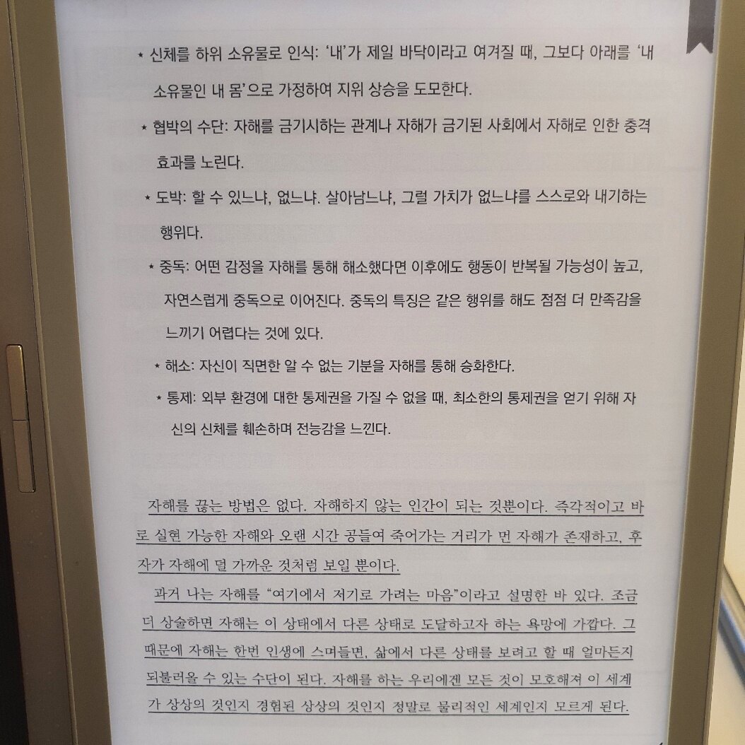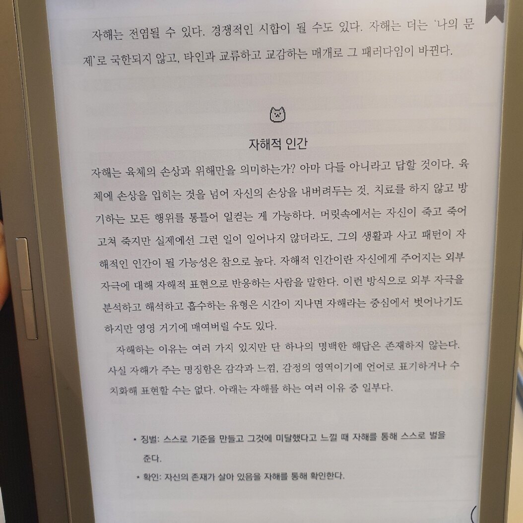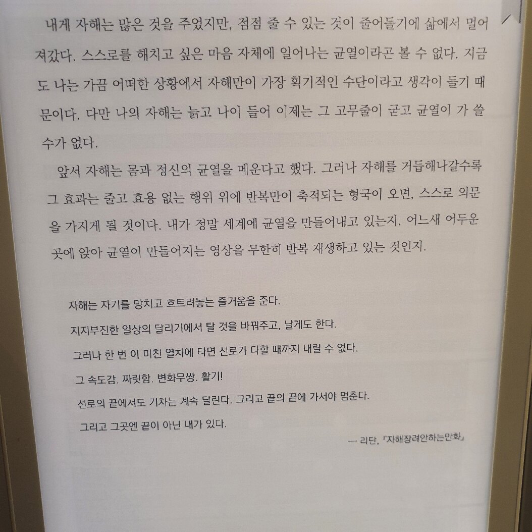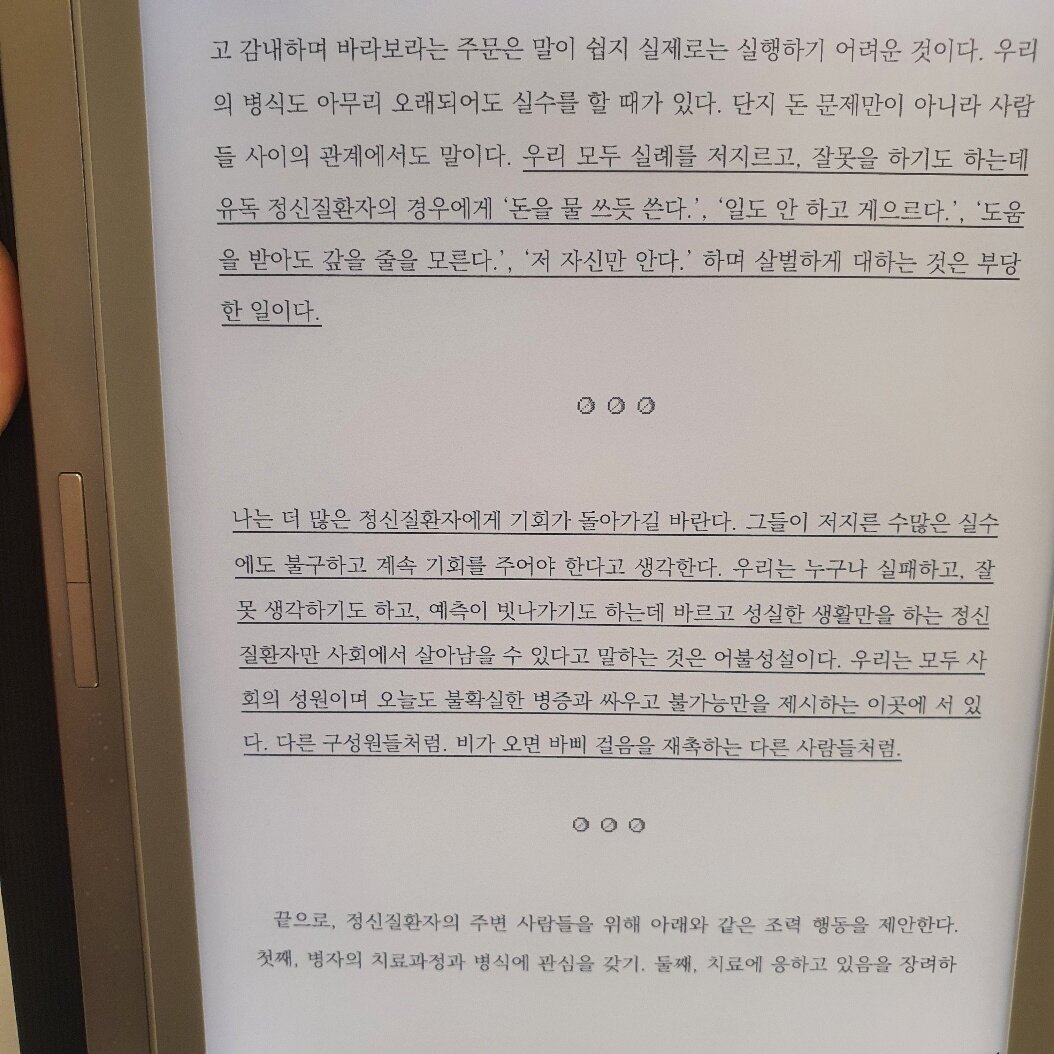 결국 정신질환이 있건 없건 자기 내면의 문제로 고통받는 그 누구든 자신과 마주할필요가있고 자기객관화와 수용역량의 증대가 반드시 필요하다.