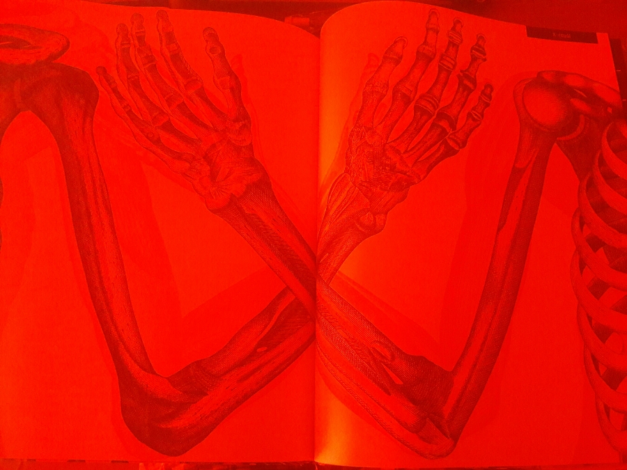 관절, 팔뼈, 갈비뼈, 머리뼈, 다리뼈 주요한 뼈들을 빨간렌즈를통해 들여다보니, 뼈가 이렇게 생겼구나, 를 확인할 수 있었다.