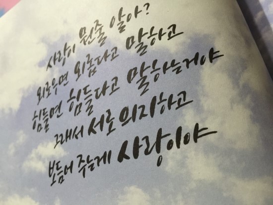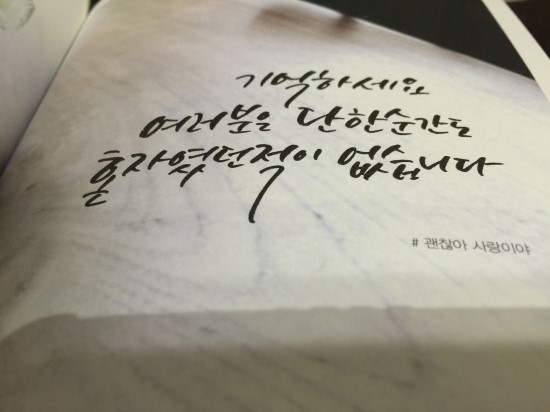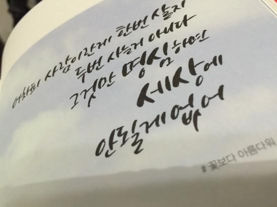 책의 한페이지 한페이지는 이미지와 함께 이쁜 글씨채로 쓰여있어서 더욱 저한테는 아름답게 다가 왔습니다.