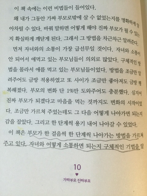 가짜부모를 벗어나기위한 아이와의 의사소통법 이라던지 어떻게 해야하는지에 대한 내용들이 나옵니다.