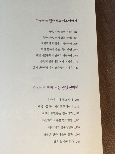 자식들이 행복해진다는 정말 당연하지만 우리가 쉽게 접할수 없는 것들에 대해서 알려줍니다. 저는 개인적으로 이 챕터4가 너무나 마음에 들고 꼭