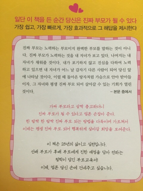 이제부터는 진짜부모 진짠 아빠가 되기위해서 이 책에 나와있는 내용과 교훈을 토대로 시도해 보겠습니다.
