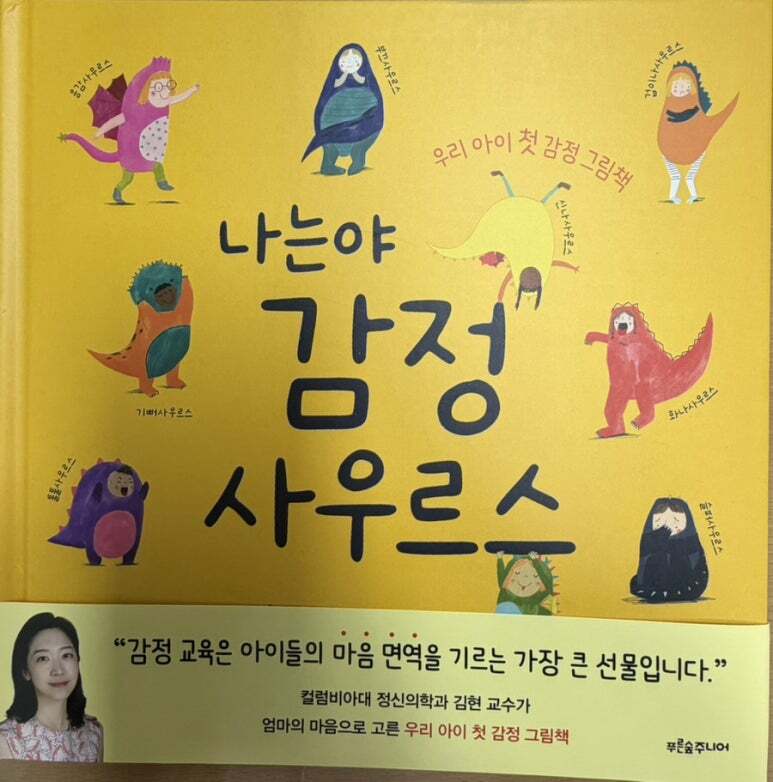 "나는야 감정사우르스"는 아이들이 자주 느끼는 열 가지 감정을 귀여운 공룡 캐릭터로 표현한 그림책이에요.