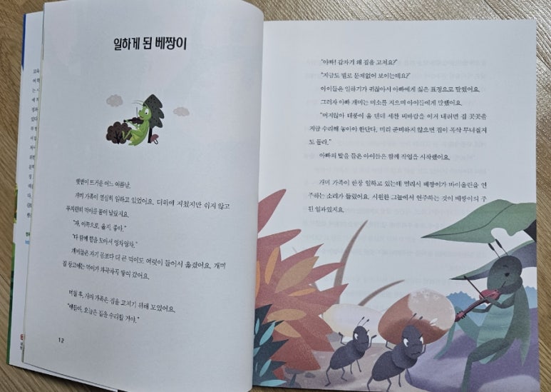 1장 개미와 베짱이에서 베짱이는 연주로 일을 해서 개미네 집에서 생활하는 값을 벌게 되고요.