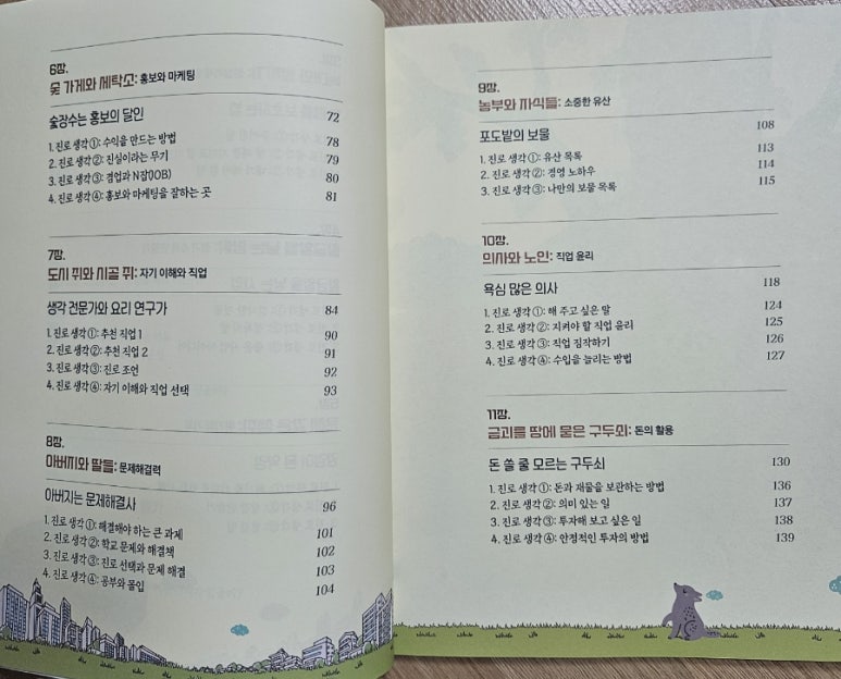 7장 도시 쥐와 시골 쥐에서는 직업을 선택하는 데에 있어서 기준과 추천직업에 대해 생각해보는 장이에요.