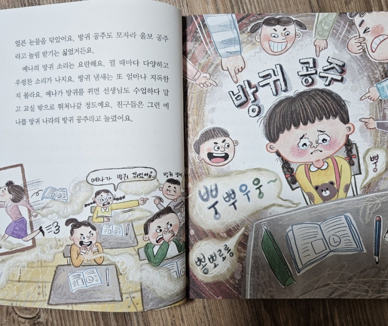 시도 때도 없이 나오는 방귀 때문에 친구들은 예나를 방귀 공주라고 놀려요.