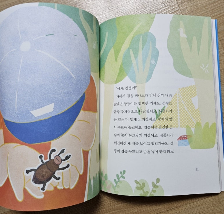 세 번째 이야기 〈장풍이 오줌 맞은 날〉은 키우던 장수풍뎅이를 자연에 놓아줌으로써 생명과 공존에 대해 생각해 보게 하는 이야기입니다.