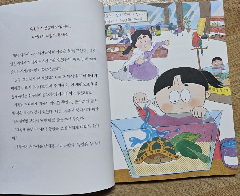 첫 번째 이야기 〈거북이 고아원〉은 동물을 키우고 끝까지 책임지는 마음에 대한 이야기입니다.