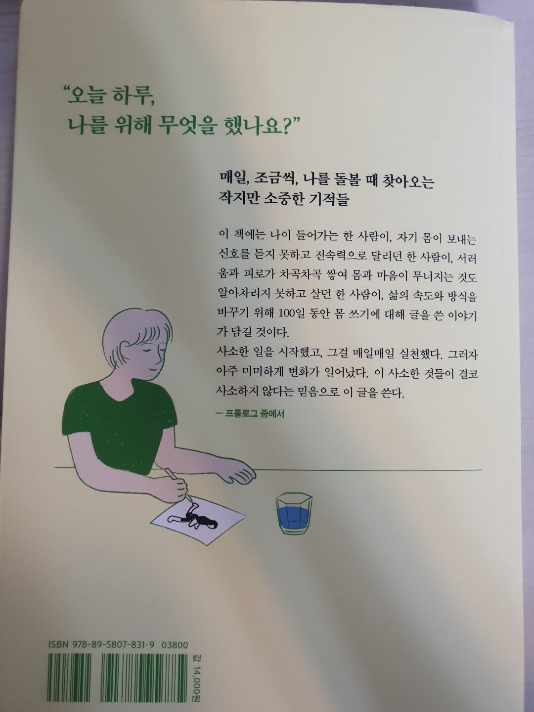 작가는 4명의 글벗들과 함께 100일 동안 몸을 쓰는 일에 대해 글을 쓰면서,