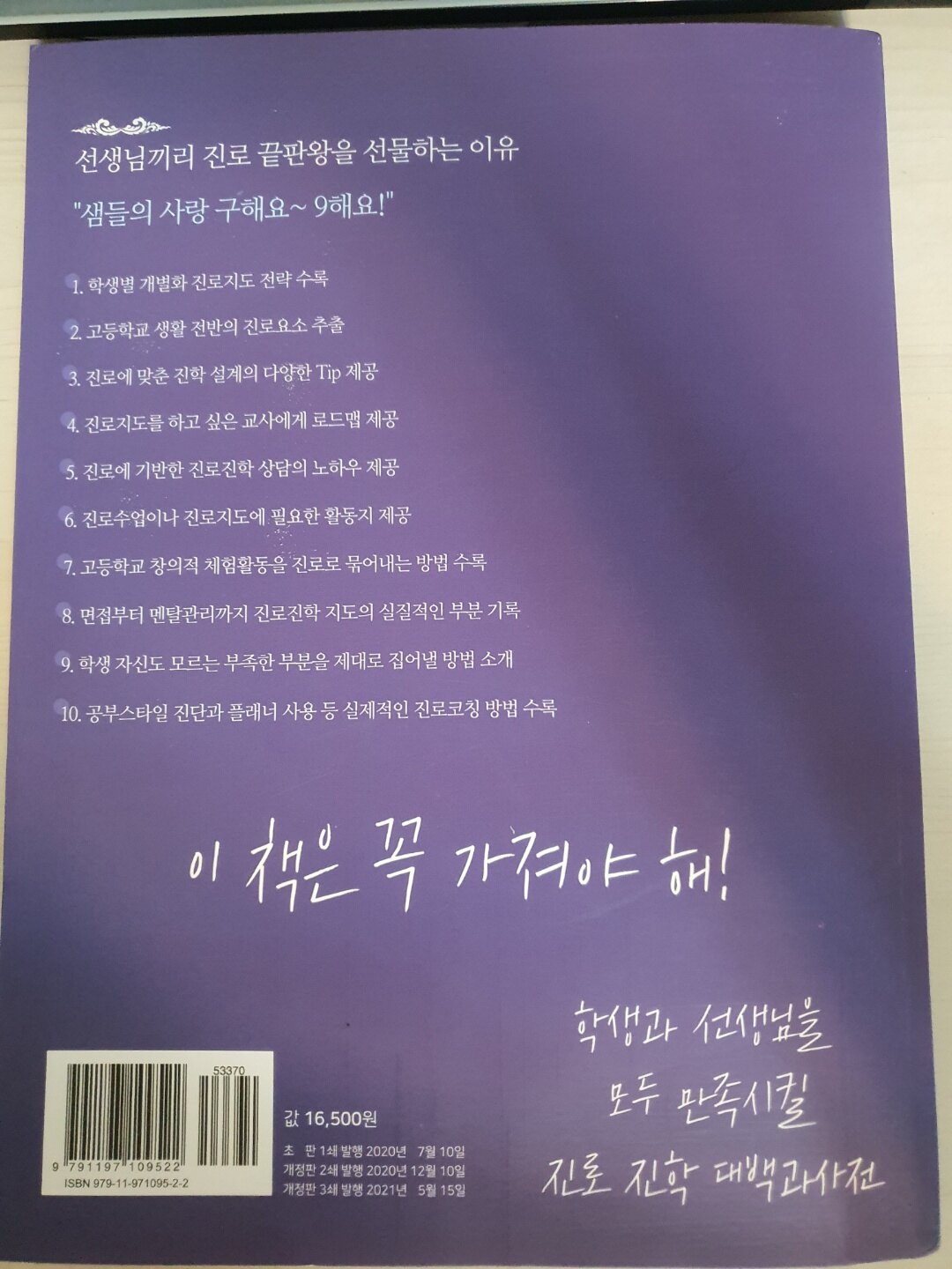 선생님이 학생에게 진로를 기반으로 진학지도를 하도록 정보를 모아놓은 책이다.