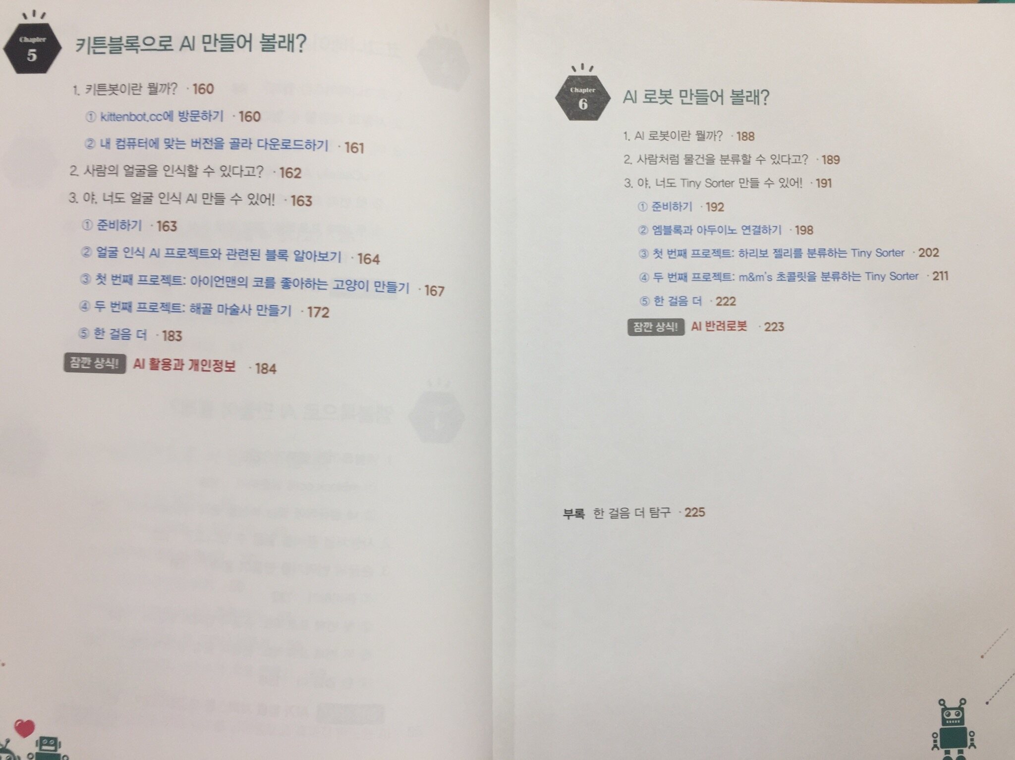 미래 사회를 대비하기 위해 준비해야 한다는 것은 누구나 느끼고 있으나 그렇다면 우리가 무엇을 준비해야 할 것인가 막연한 두려움과 걱정인 우리에게 , 다행히 이러한 시대적인 흐름을 미리 읽고 전문적인 지식을 쌓아 실질적인 도움을 주기 위해 여러 선생님들의 협업으로 좋은 책이 나왔으니 바로 ‘너도 한번 AI 만들어 볼래?“라는 책입니다.