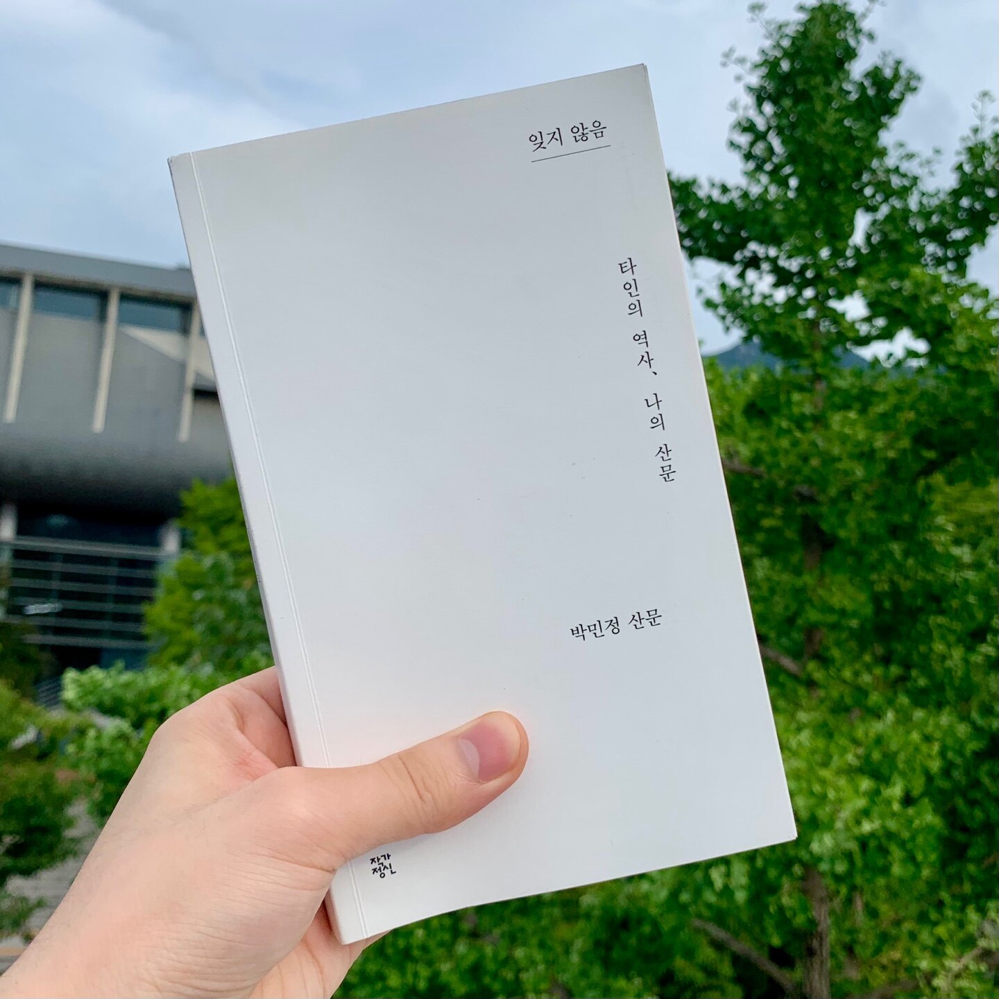 작년에 박민정의 『미스 플라이트』민음사, 2018)를 읽었다. 무척 힘든 날이었는데, 그때 읽으려고 여태 읽지 않았던 걸까 생각이 들 만큼 무겁고 아픈 이야기였지. 올해는 박민정의 산문집을 읽는다. 산문집이 좋다면 단편 소설에 비해 짧은 분량의 글들을 읽으며 자주 멈춰 설 수 있다는 점에서 그러할 것이다. 이 책의 부제작(?)이면서 2부를 여는 글, 「타인의 역사, 나의 산문」의 한 문장으로부터 이 서평을 시작해야겠다. "나의 산문이란 언제나 내 육체가 거했던 그 당시에 완성되지 않았고, 내가 그것을 끊임없이 재의미화하며 성장해갔을 때 어느 날 비로소 만들어졌다(67쪽)." 앞으로 소개할 글들도 찬찬히 뜯어 살펴보면 같은 생각을 공유한다: 나 혹은 타인이 이전에 겪은 무언가를 현재의 내가 '재의미화'하며 글로 써낸다, 과거의 나와 타인과 무언가와 그걸 바라보는 현재의 나를 '잊지 않기 위해서'.