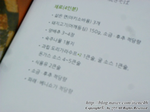 아~~~ 그리고 제가 좋아하는 야끼소바 만드는법도 나와있었는데요.