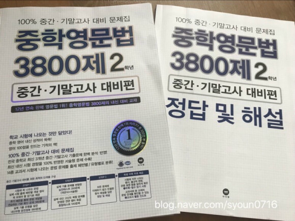 중학 영문법으로 유명한 3800제에서 중간·기말고사 대비편이 나왔어요. 우리집 그녀가 영문법에 약해서 눈이 번쩍 뜨였던 책이지요. 그런데 아쉽게