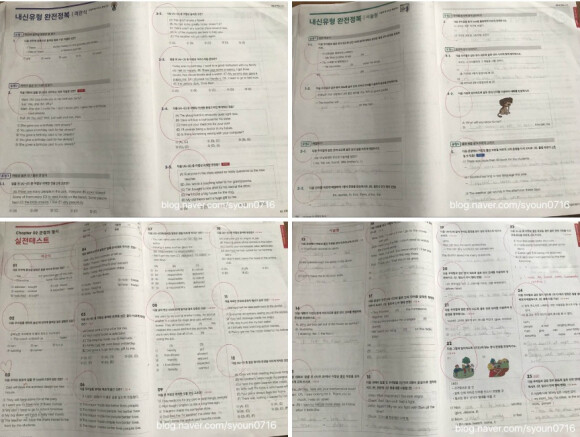 시험대비편이라 기출문제를 주로 다루고 있구요, 빈출과 최빈출 되는 문법에 대한 설명과 꼭 암기 해야할 것 들은 빨간색으로 표시해 두어 눈에
