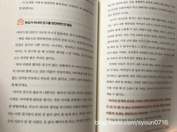 읽어도 좋을 듯하다. 부모들마다 환경이나 사고방식, 육아의 태도가 다르기에 공감하는 질문들에 대한 부분만을 들여다 보아도 도움이 많이 될