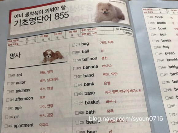 가장 먼저 예비 중학생이 외워야 할 단어 855개를 시작으로 되는데 이미 중등생인 그녀에게 확인차 보라고 했더니 대부분