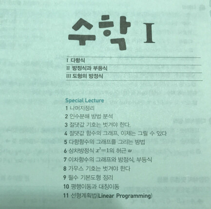 수1은 중등수학에서도 배우는 부분이라 더욱 눈에 들어온다.
