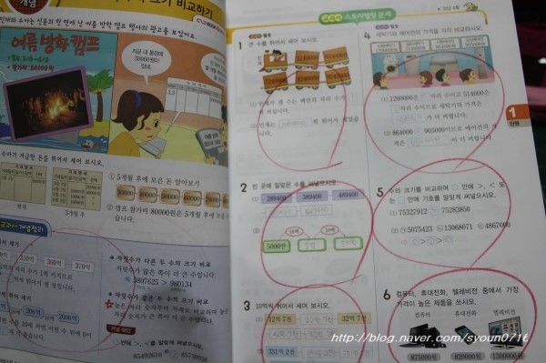 교과서와 해법수학의 부분을 비교해 놓았더라구요.