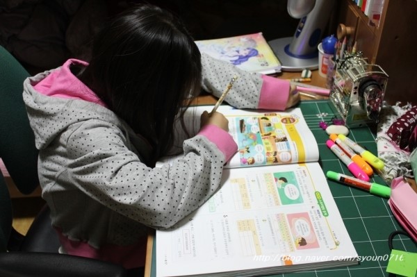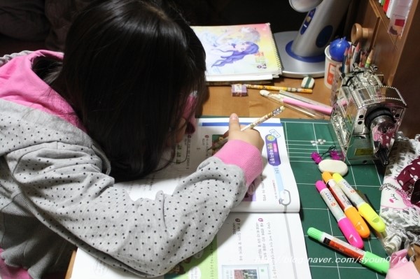 스토리텔링 개념서 문제를 풀어보고 있는 그녀..