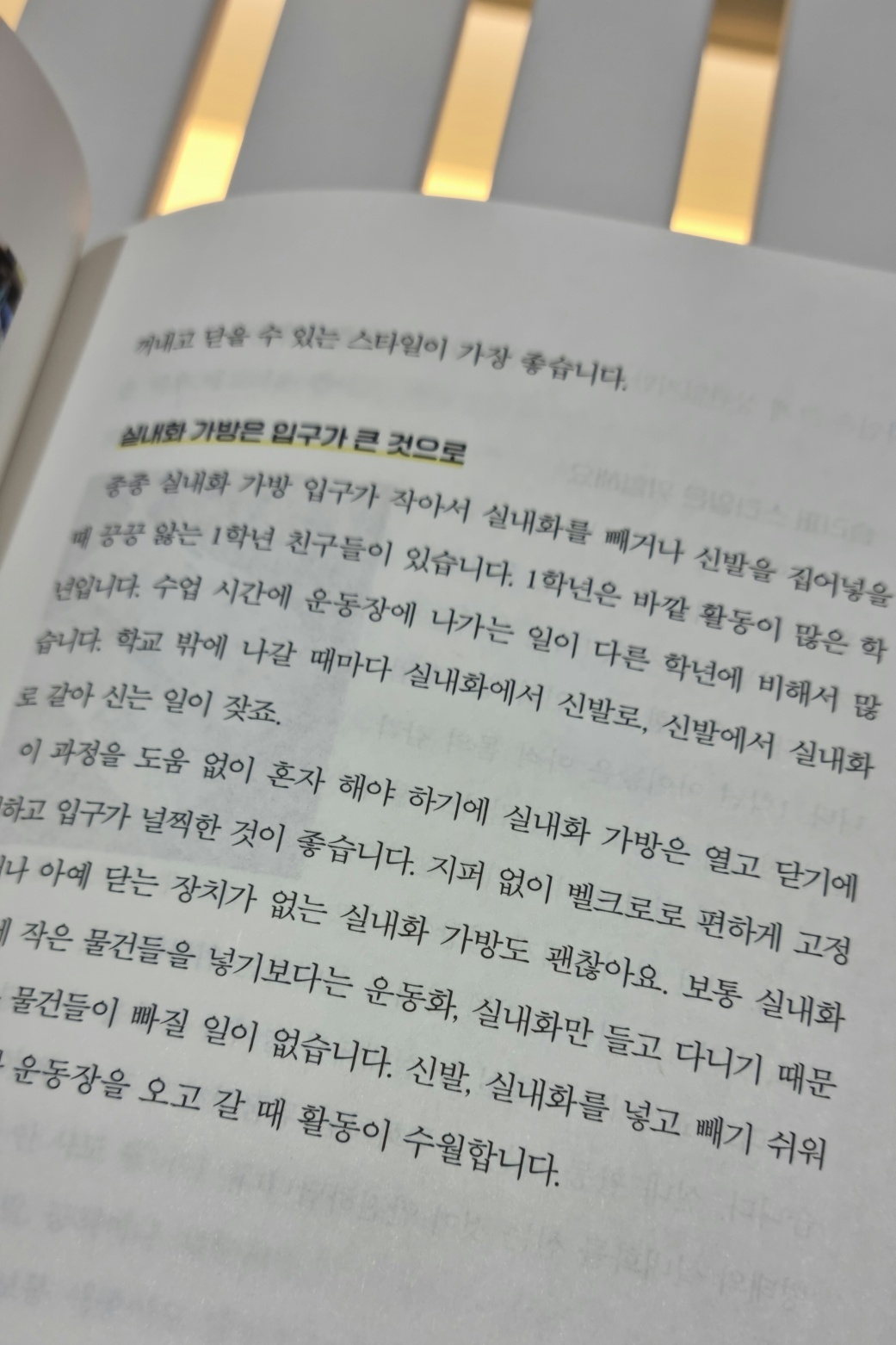 오히려 유치원 때 쓰던 실내화 주머니를 학교 가방에 넣고 다니기가 더 편해서