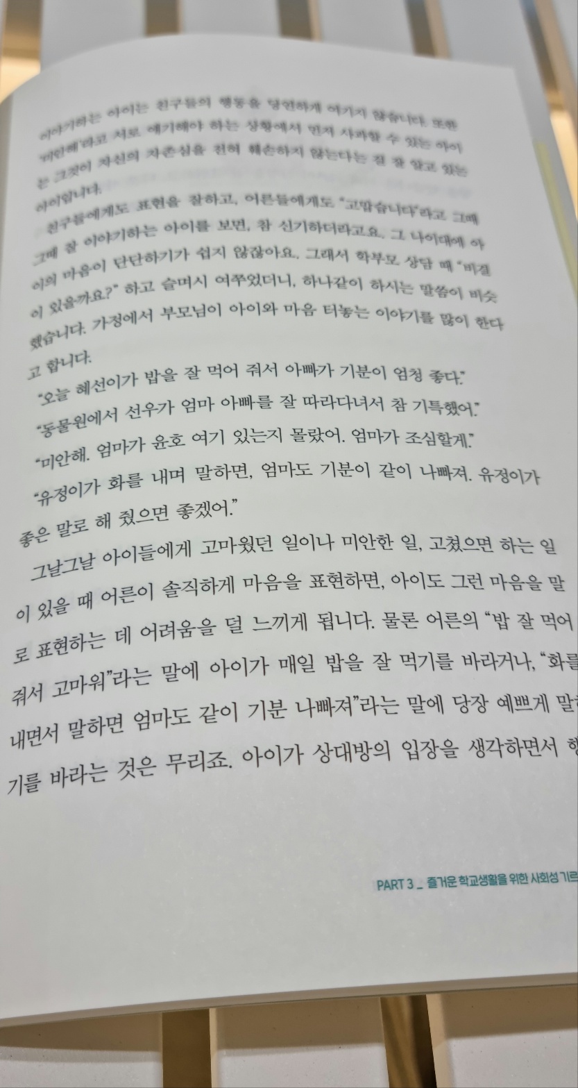 책에서 말하듯이 '조용한 사회적인 예의'를 '구체적으로' 알려줘야 한다는 것.