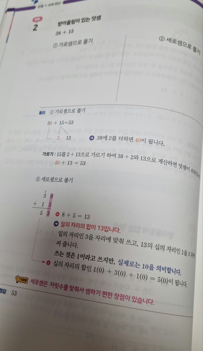 '가로셈으로 푸는 게 뭐야...? 맞는 자리끼리 포물선 그려서 하라는 건가?'라고 생각하던 라떼...