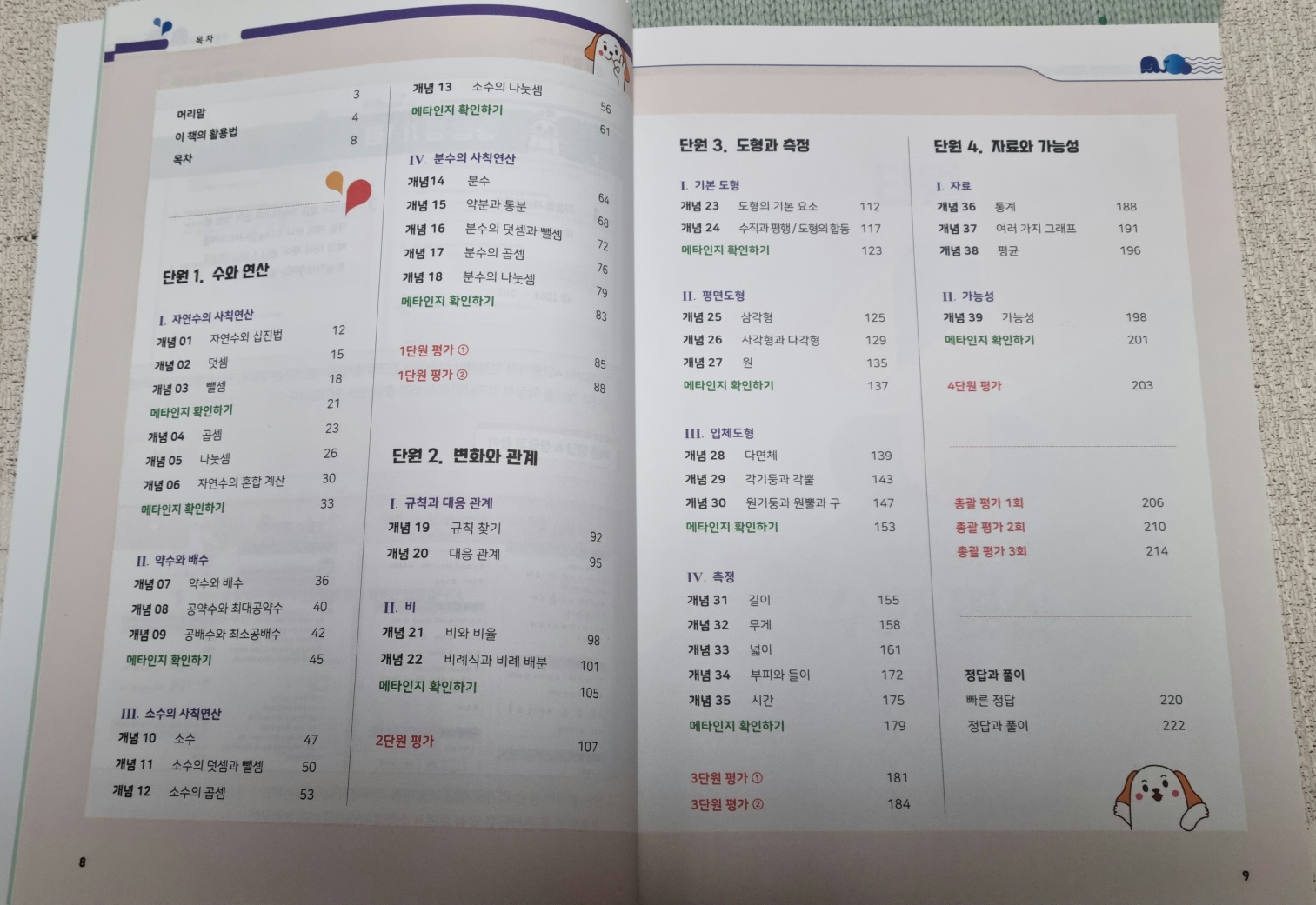 초등 1부터 6학년까지 배우는 모든 영역을 통틀어 크게 4단원으로 나누고