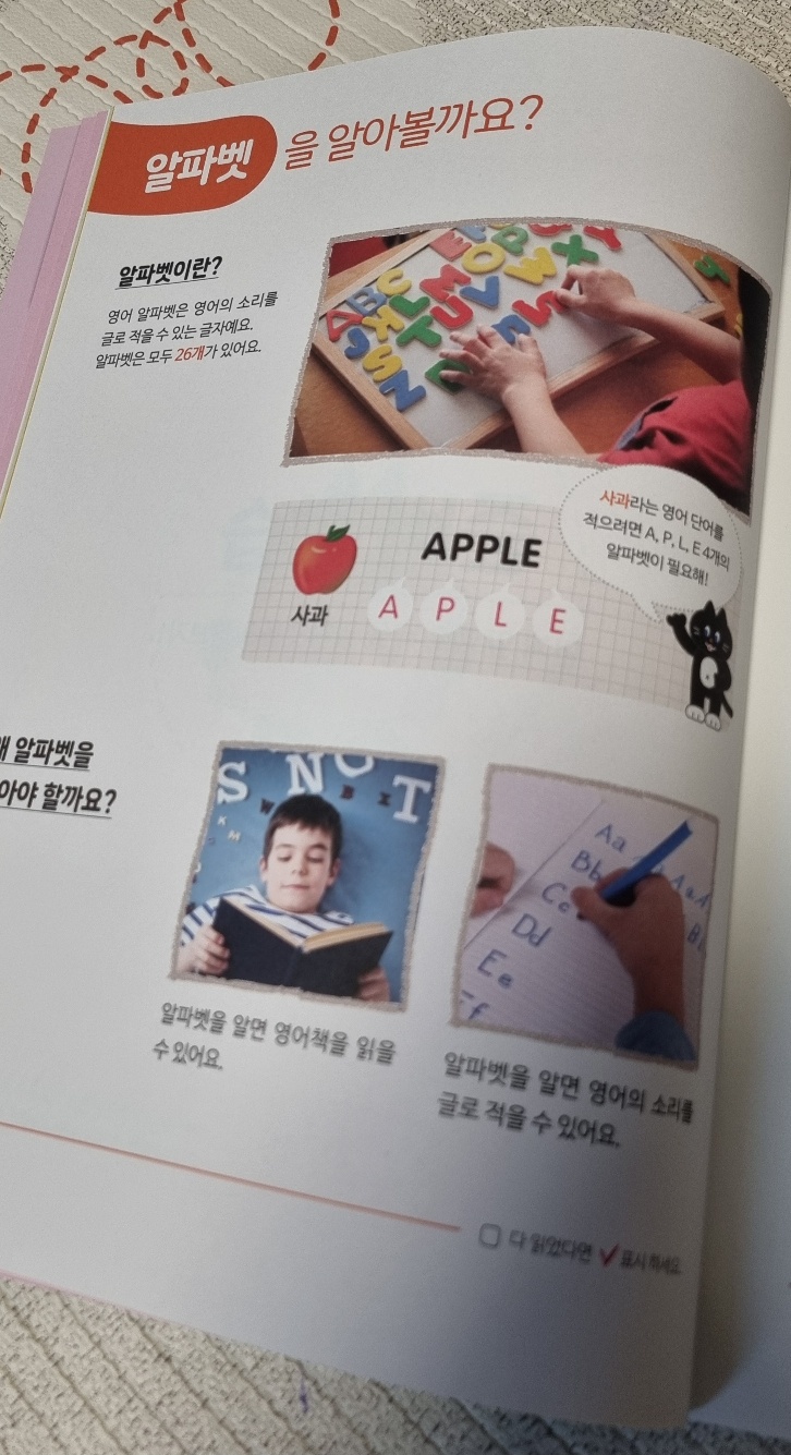 자모음과 복잡한 모음, 쌍자음, 받침을 다 하기 때문에 첫찌는 한글을 떼고 학교에 입학을 할 수 있었다.