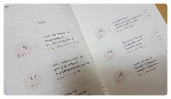 400페이지가 넘는 분량으로 1~12월까지의 챕터, 36꼭지에